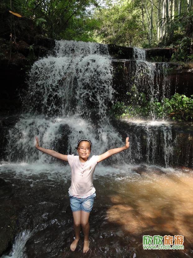 中午,我们回宾馆休息了1个小时,继续前往古寺庙--龙吟寺,这是一个千年古寺。寺前有310阶的台阶,感觉是直上云霄。这里应该算是蜀南竹海的最高点了,登上观景塔,竹海的全景一览无疑余。然后我们继续前往忘忧谷景区,这一路都是竹荫下溪流边,孩子门非常喜欢。沿路都是戏水的好地方(忘忧谷里可以玩2个小时,很轻松)。而后去了竹林博物馆、翡翠长廊、观云台---然后随便找了一个农家乐继续吃全竹宴,呵呵,还吃到了宜宾的特色:凉糕,孩子们爱得不得了!呵呵
