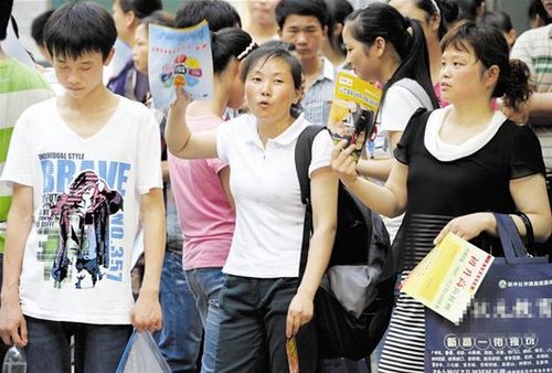 在争取生源方面,更是各比口舌。一位培训机构的授课老师口才滔滔,从假期培训的重要性一直说到孩子考后如何劳逸结合,更对家长们关心的接送时间、路线及孩子的午饭等问题一一给出安排,一众家长听得不停点头。