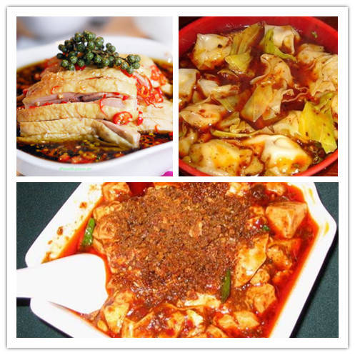 口水鸡、石磨豆花、大水饺、猪儿粑、手撕兔、甜皮鸭、黄粑、鹅肉干、金丝牛肉、豆腐干……