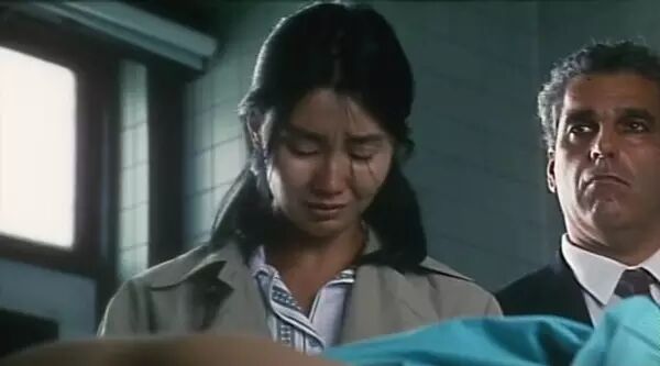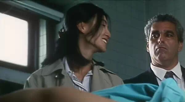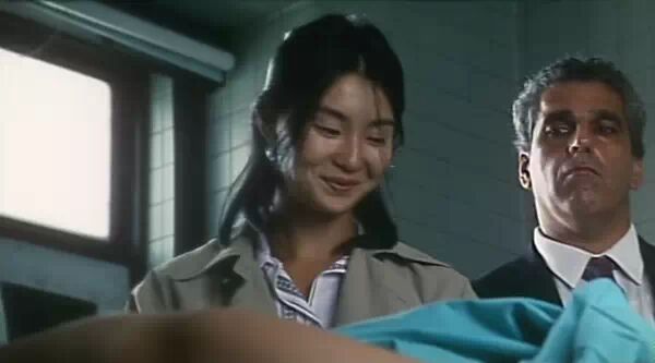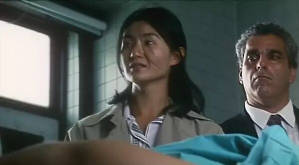 曾志伟饰演的豹哥不幸被人枪杀。豹哥的妻子阿翘(张曼玉饰)去认尸。场景是这样的: