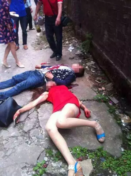据了解,男者在追杀女者(将其割喉),随后自杀,双方疑为夫妻关系。