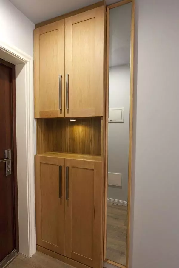 ▲ 入户的鞋柜与细条型穿衣镜。不怕人高照不了,就怕人胖入不了镜。