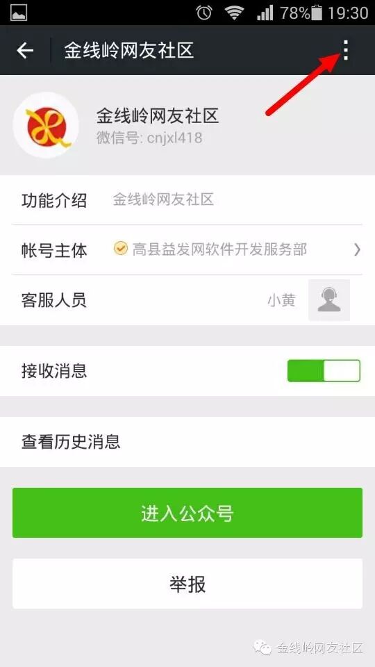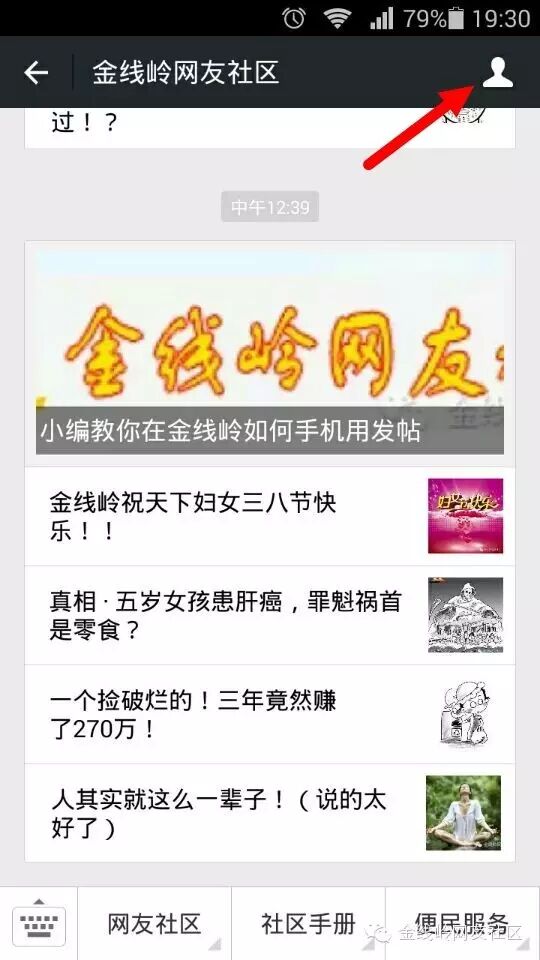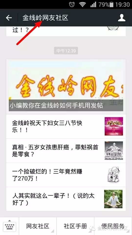 1、首先选择金线岭网友社区公众号