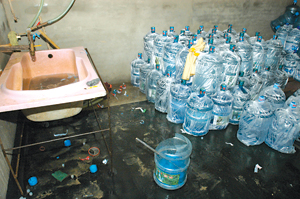 其三,随着喝桶装水的家庭的增加,装水的桶的需求量也越来越大。制作桶的原料来自于回收塑料,回收塑料的途径是:捡垃圾。而进行塑料回收的厂家,绝大部分不消毒,就把回收的塑料溶化了之后,把杂物捞掉倒进模具里面一压缩就是一个桶。去年315报道致癌的奶瓶,那就是回收塑料和医疗垃圾,用含大量致癌物质的桶天天装水,结果会怎样?癌症就在我们身边! 饮用水,牵动着全世界人民的心!