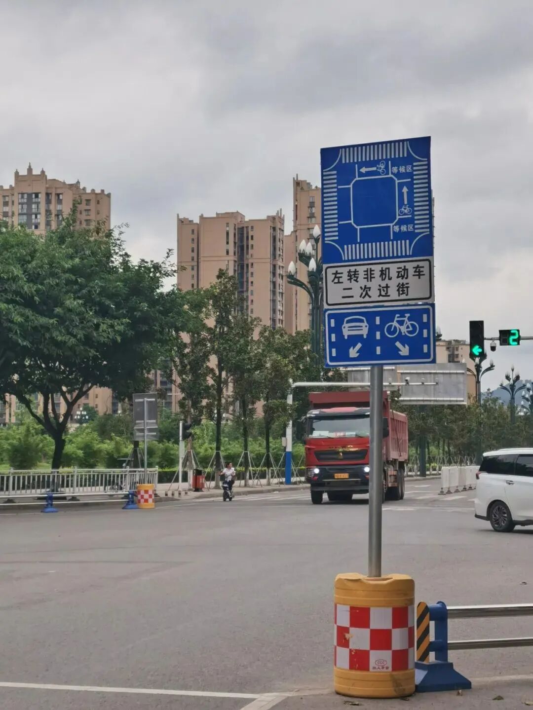 二次过街在我们县城的很多交通路口已经存在一年多了,去年9月18日星哥在高县金线岭社区上就发表了一篇关于高县“二次过街”(点击蓝字阅读原文)的文章。在这篇文章里面星哥当时拍摄的指示牌上的文字是“左转非机动车二次过街”,于是星哥就提出了两个疑问:一是直行的非机动车需不需要走二次过街通道;二是燃油摩托车是机动车,是可以在机动车道上行驶的,左转的时候是不是也需要二次过街。