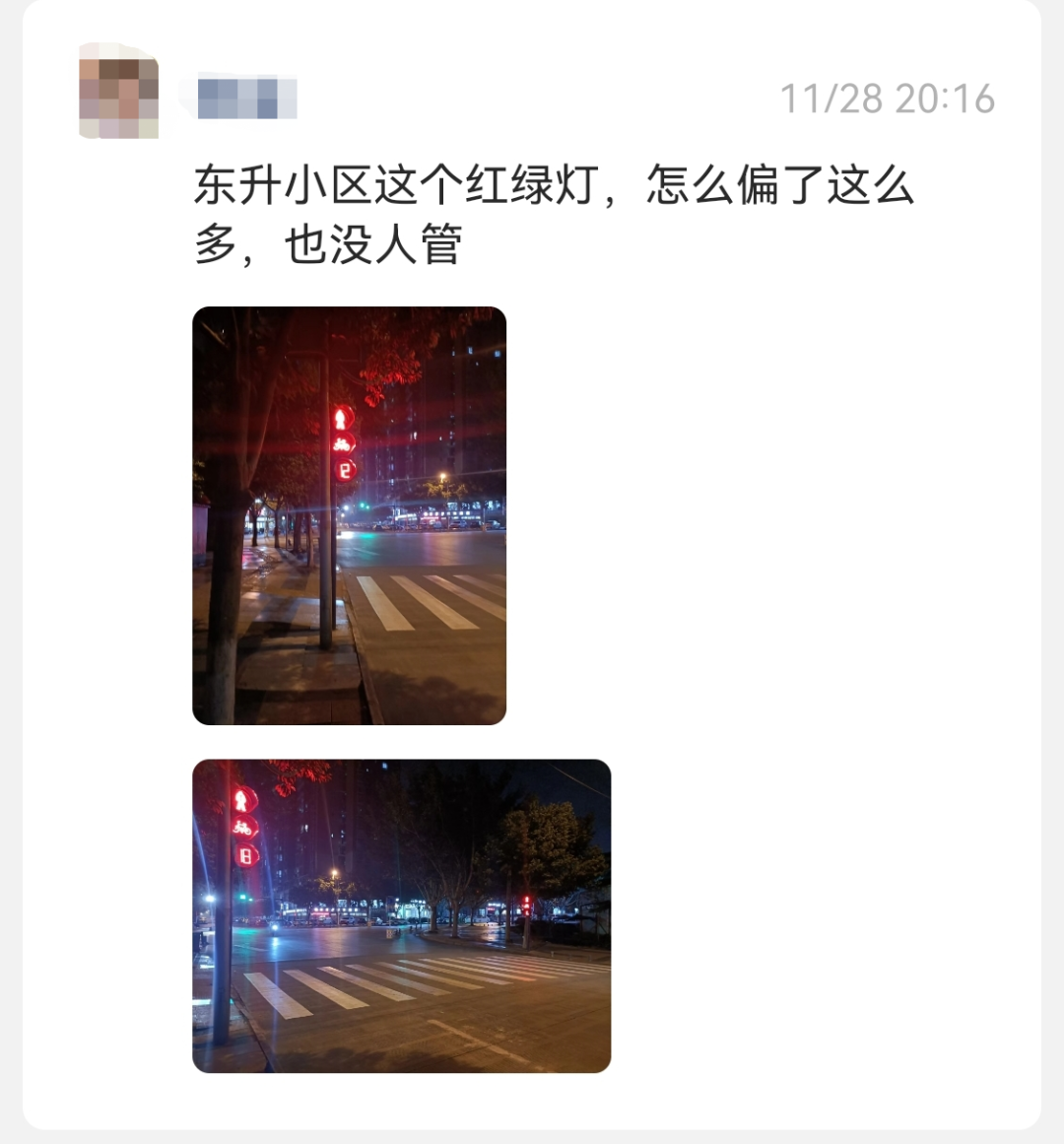 不是喊各位向右看齐,是喊伫立在东升大道和永顺街交汇的十字路口西边,这个人行道上的一个交通信号灯站规矩。确实这么久时间以来,这个交通信号灯十分听话,一直不向前看,始终向右看。 下面这两张图片是一位网友提供的,并写道:东升小区这个红绿灯,怎么偏了这么多,也没有人管。 星哥要感谢这位观察仔细的热心市民,我们的城市就要有更多的人像你一样关心身边的每一个细节,参与到城市的建设、管理和监督等各个方面,这样我们的城市才能有序和良好的发展。 这个交通信号灯其实已经被撞歪了很久了,星哥每次从这个信号灯处经过,心中都在想,看看到底要到哪个时候才有人来修。上次创建文明城市,我还以为肯定会来把它扳正,结果它还是歪着脖子向右看。 这个交通信号灯应该不是人的力气能够扳歪的,应该是牛高马大的车子撞歪的。不晓得十字路口的监控设备有没有拍摄到这个肇事现场,如果当时就马上追查,那辆肇事逃逸的车子肯定难逃处罚,可是过个这么久,估计那段肇事的视频都被覆盖了。还有就是那辆把信号灯撞歪的车子的车主,你当时拿点工具把人家扳正嘛,做错了事情及时弥补也是善莫大焉。 我们的各个单位和部门都会有一些制度,比如我们学校场地和器材就有器材保管制度、器材借还制度、器材破损制度和场地巡查制度等。对于这种重要的交通信号灯,难道相关单位和部门就没有相应的规范的制度进行巡查和维修。估计应该有,只是有没有执行到位而已。 交通信号灯和标识关系着众多行人和车辆的生命财产安全,若有破损和异常难道不应该及时处理和维修吗?